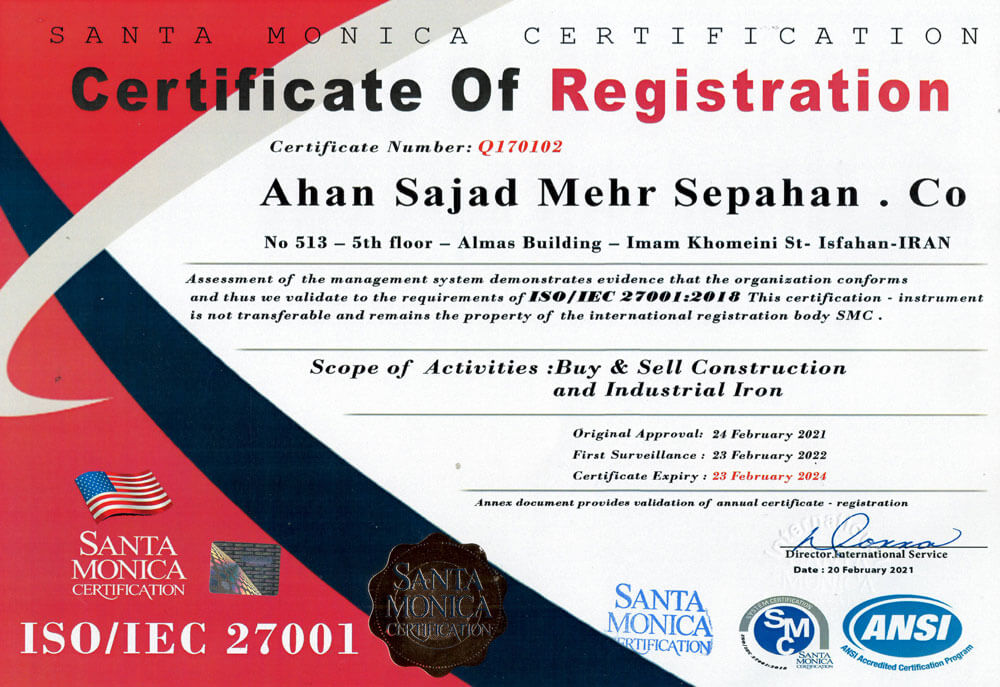 Маркази Оҳан дар давоми солҳои фаъолияти содиқонаи худ дар бахши хариду фурӯш ва содироти таҷҳизоти оҳанӣ тавонистааст ҳамчун яке аз аввалин ширкатҳои оҳанфурӯшӣ сертификатҳои ISO 9001:2015, ISO 27001:2018 ва ISO 10004:2018-ро ба даст биёрад. Маркази савдои Оҳан бо хизматрасонии босифат, ба даст овардани қаноатмандии аксари муштариёни худ аз роҳи фурӯши маҳсулоти босифат ва бурда расонидан дар муддати кӯтоҳ, ба дарёфти сертификати ISO 9001:2015 муваффақ шудааст.
